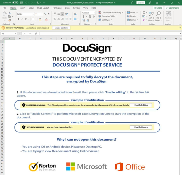 Si bien las macros están desactivadas de forma predeterminada en Microsoft Office, se solicita a los destinatarios de los mensajes de correo electrónico que habiliten la macro para ver el contenido real del documento. Esto desencadena la siguiente fase del ataque para descargar las cargas útiles maliciosas de uno o más dominios controlados por atacantes.