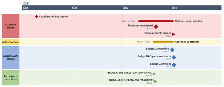 El pirateo de alto perfil de la plataforma DeFi BadgerDAO, que salió a la luz a principios de diciembre de 2021, fue uno de esos casos de phishing de hielo, en el que un fragmento inyectado maliciosamente utilizando una clave API comprometida permitió al adversario desviar $ 121 millones en fondos.